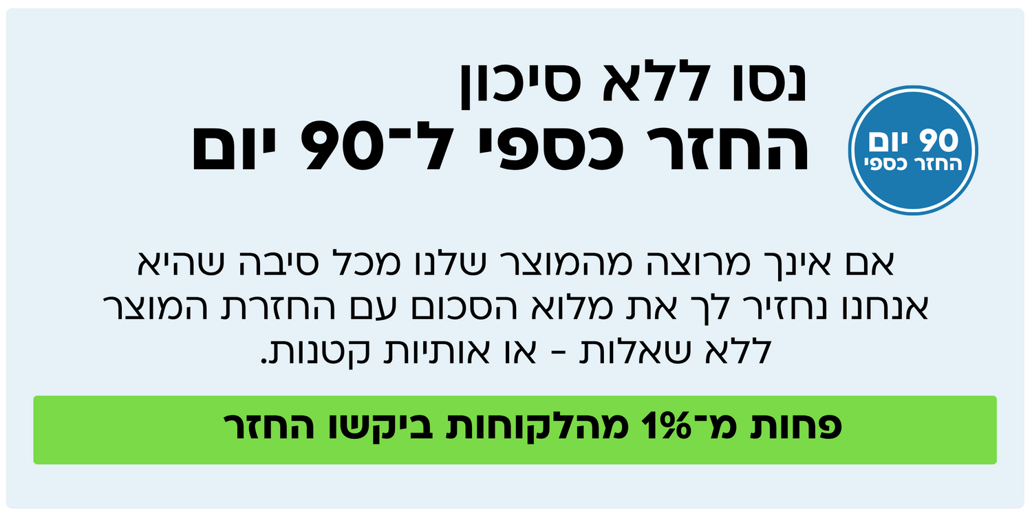 כן, יש לנו יש אחריות להחזר כספי למשך 30 יום, כך שניתן לנסות את המוצר ללא סיכון.