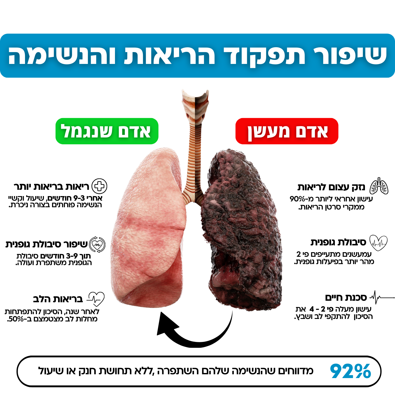 דיווחו שיכולת הנשימה השתפרה משמעותית – הם הרגישו פחות קוצר נשימה, פחות שיעול, ויותר אנרגיה לאורך היום.