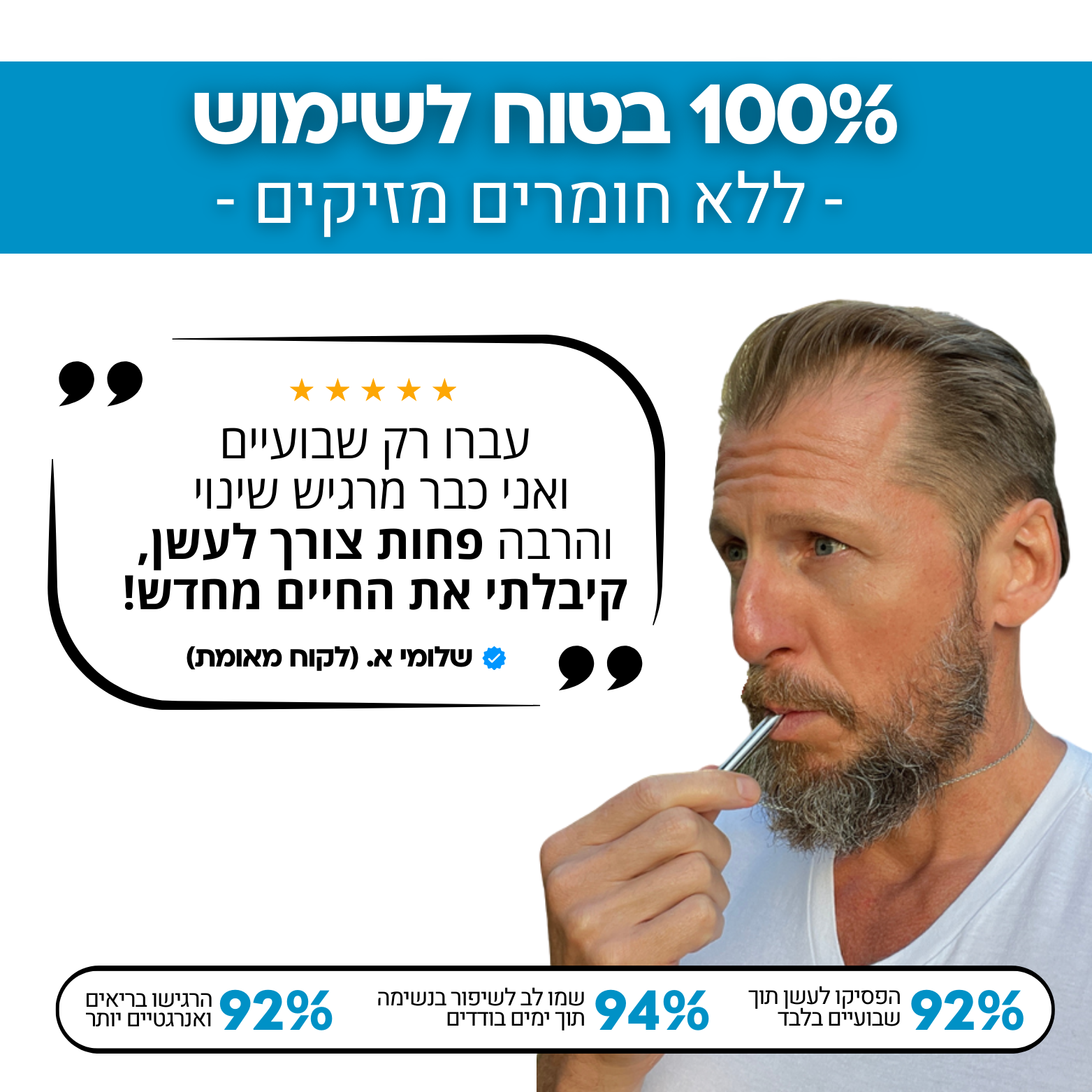 לפי נתוני המשתמשים שלנו, 91% הפסיקו לעשן לחלוטין תוך כמה שבועות של שימוש קבוע בתליון הנשימה.
